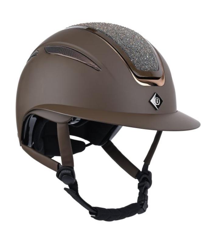Protégete con estilo con nuestro casco de equitación IRHOlania Deluxe. El casco está disponible con visera grande.